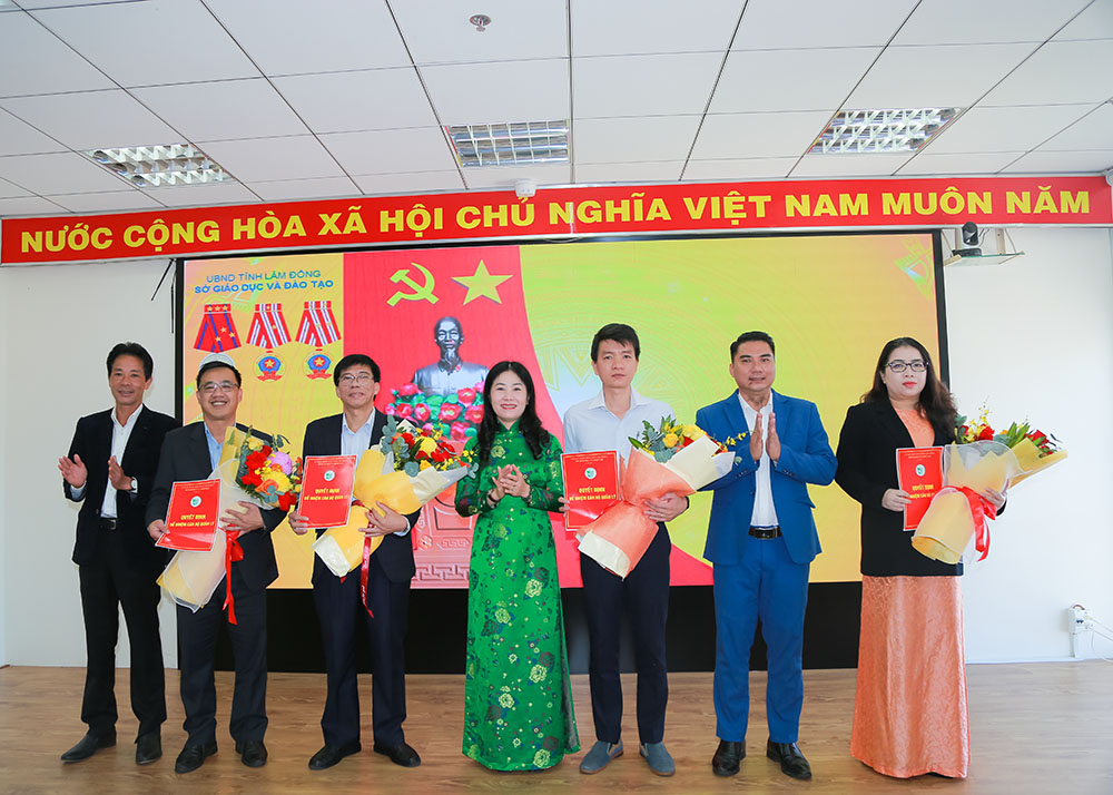 Giám đốc Sở GD&ĐT Lâm Đồng Lê Thị Bích Liên trao các quyết định công tác cán bộ của cơ quan Sở
