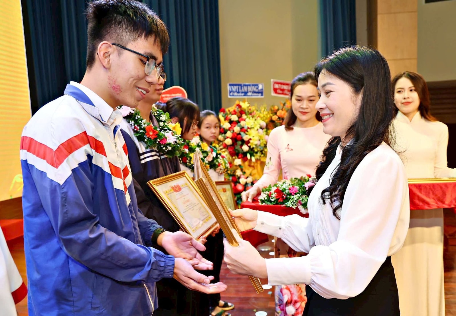 Giám đốc Sở GD&ĐT Lê Thị Bích Liên tặng Giấy khen cho học sinh tại Hội nghị Tổng kết năm học 2024-2025
