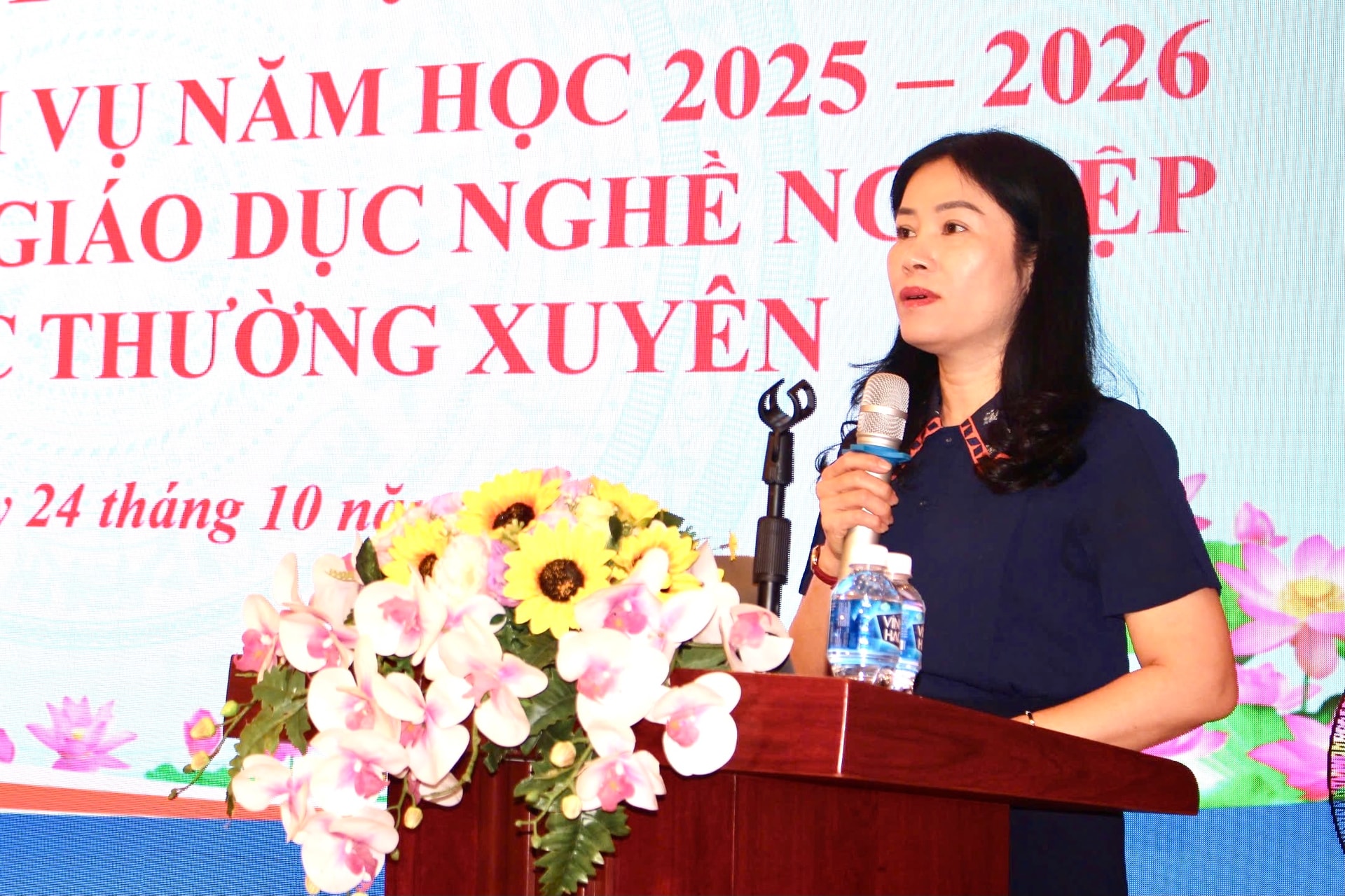 Giám đốc Sở GD&ĐT Lê Thị Bích Liên báo cáo tại Hội nghị Tổng kết năm học 2024-2025